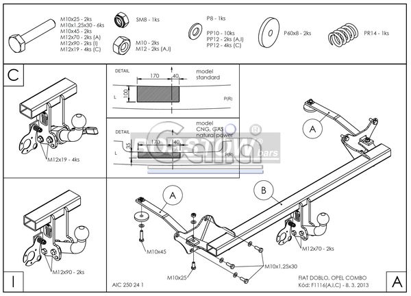 Premium Artikel aus der Hauptrubrik Anhängerkupplung für Opel Combo: Anhängerkupplung starr, feststehend. Lieferumfang für die Montage: Komplette AHK in Premium Ausführung mit höchstem Korrosionsschutz durch die Verzinkung, AHK komplett inklusiv Querträger, Befestigungsteile, Kupplungskugel, Schraubensatz, Nachrüsten Montageanleitung u. Gutachten für die AHK. Alternativ bieten wir ebenfalls einen Adaptersatz zur Umrüstung auf 2-Loch Flansch an - dieser ist separat zu bestellen. Bei Fragen zur ausgewählten Anhängerkupplung für den Opel Combo rufen Sie uns gern an. |
